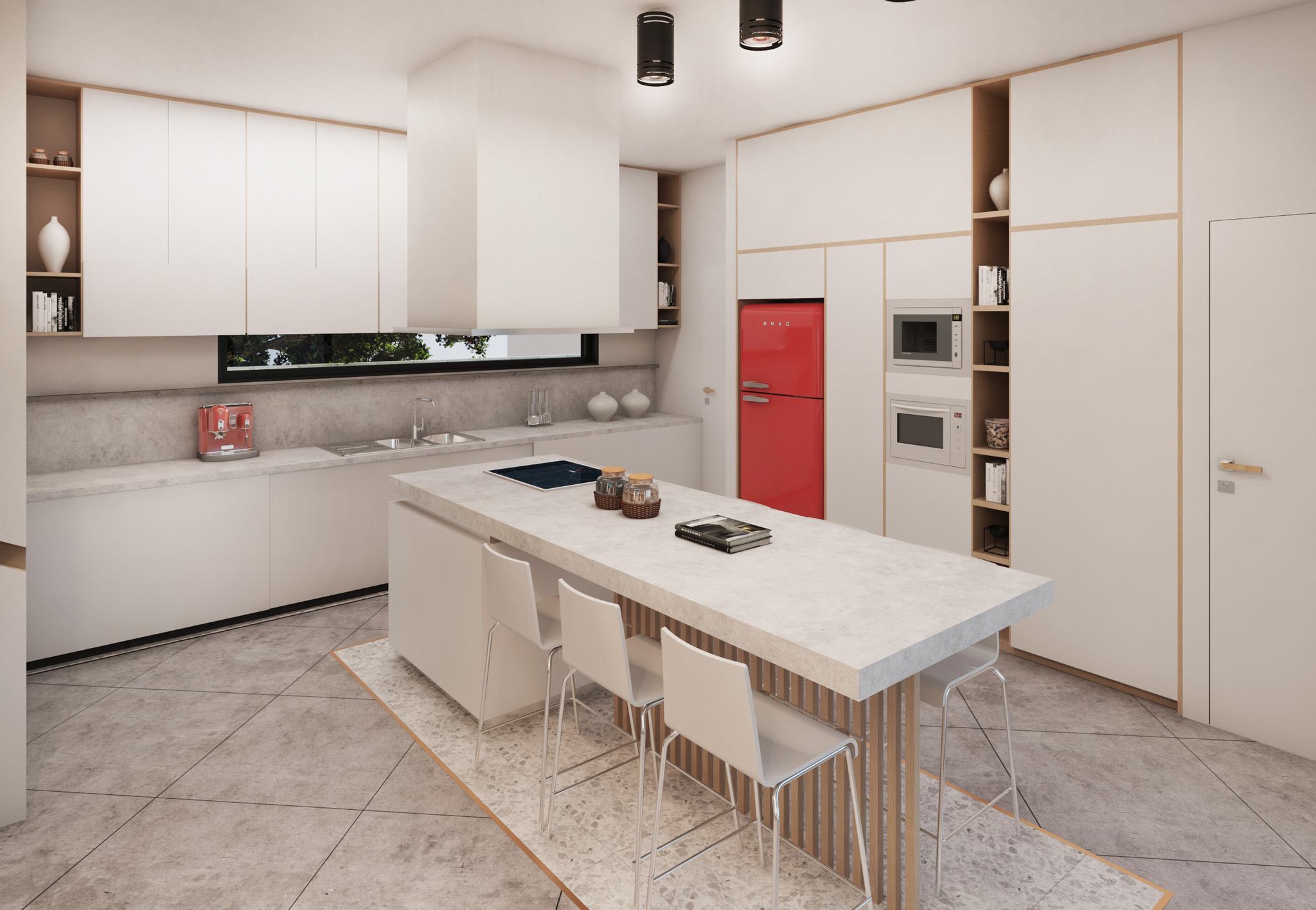 The interior architecture meets the needs of the family, each part capable of being customized to the specific needs of their application. From the custom kitchen, wardrobe and playroom to a metal – fabric hanging lighting in the dining room, all designed to take your breath away while entering each room.