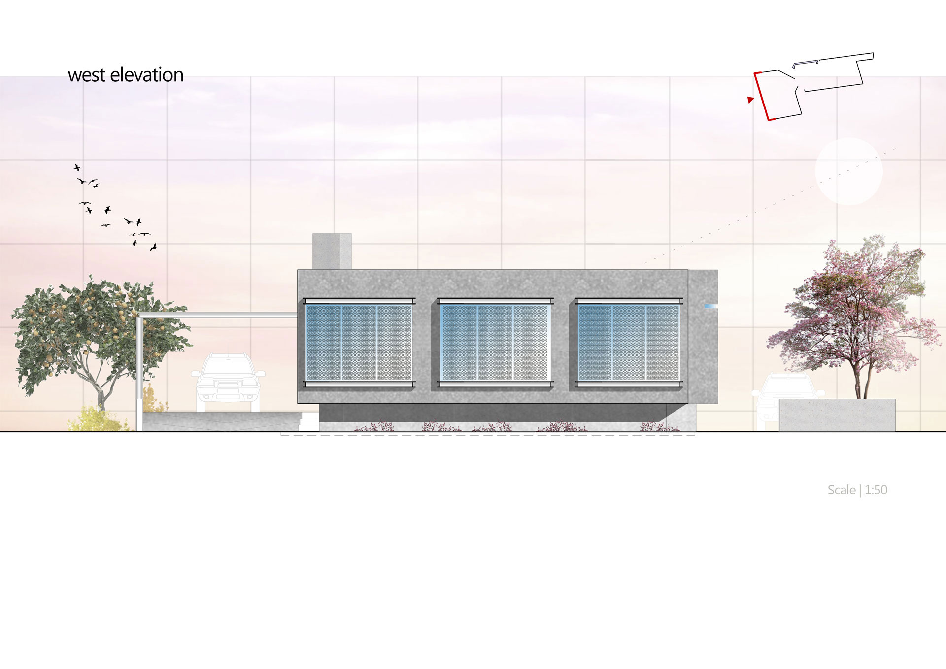 In addition, to the tectonics the solid volume of the building that will be raising to 110cm, to avoid visuals and have better view. Because windows on ground floor attracts visual interaction. Furthermore, they will use the so-called “mashrabiyas” windows. Which restricts visibility while allowing sunlight. Also, gives a luxurious visuals reference to street level view.