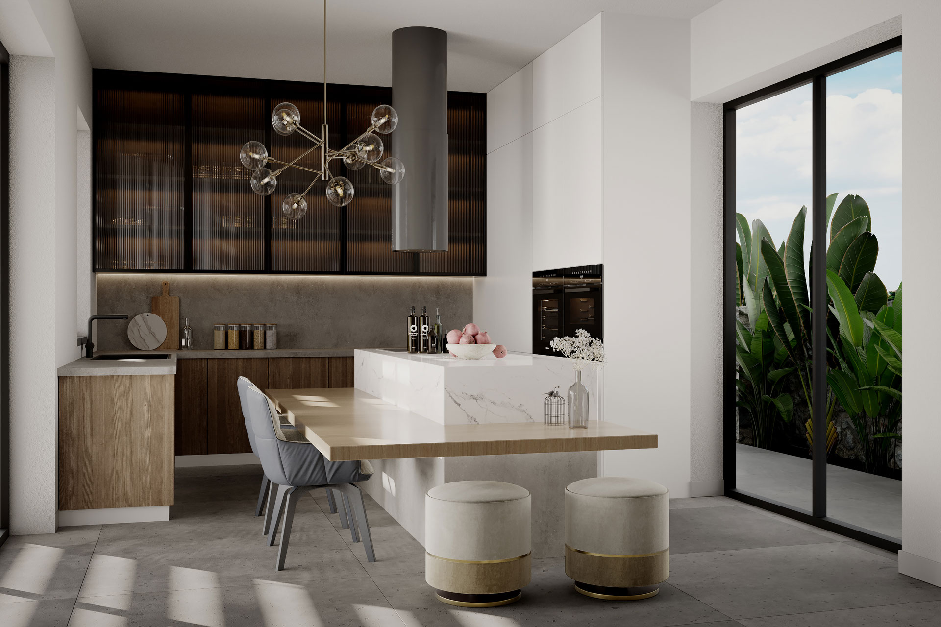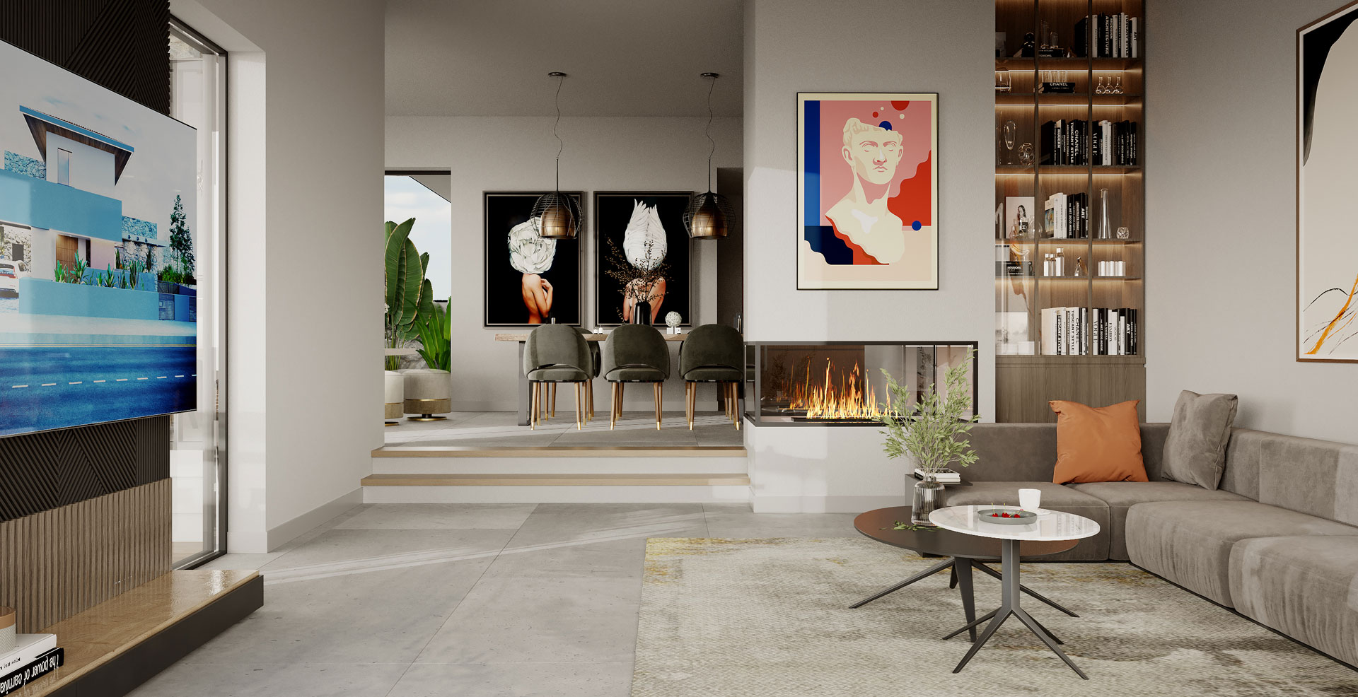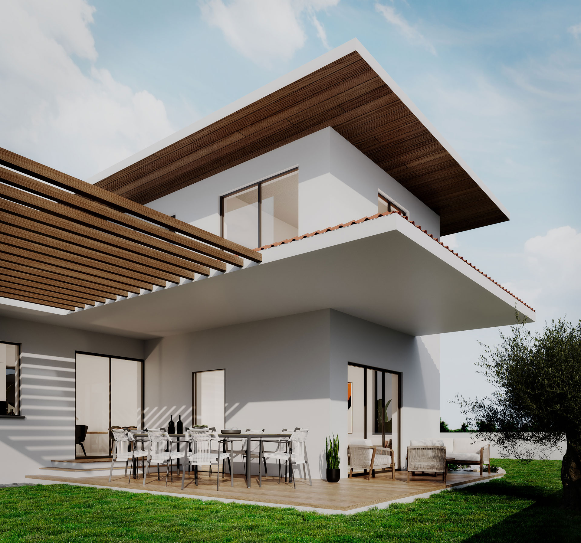 The residence is located in Dali area, Nicosia. The linear line work of the façade and the contrast of the stone cladding, is emphasized with the long-extended slabs. We have maximized volumes with the extruded dimensions of the first-floor walls.